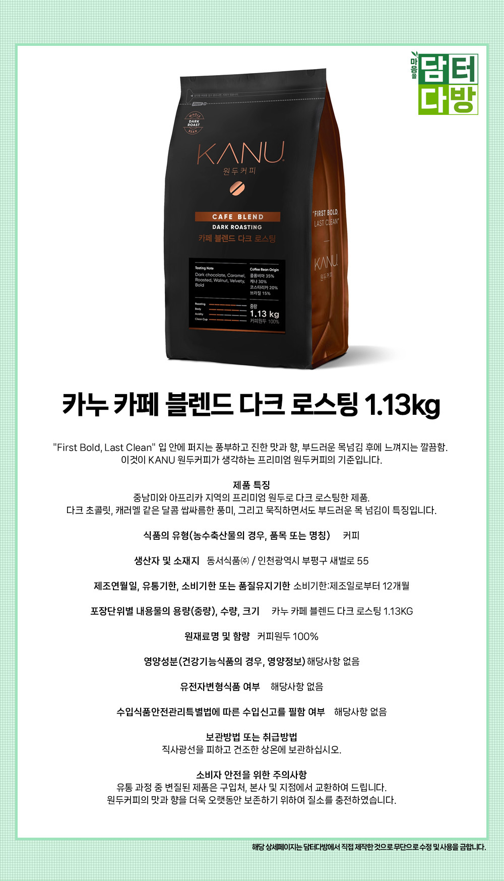 카누 카페 블렌드 다크 로스팅 1.13kg