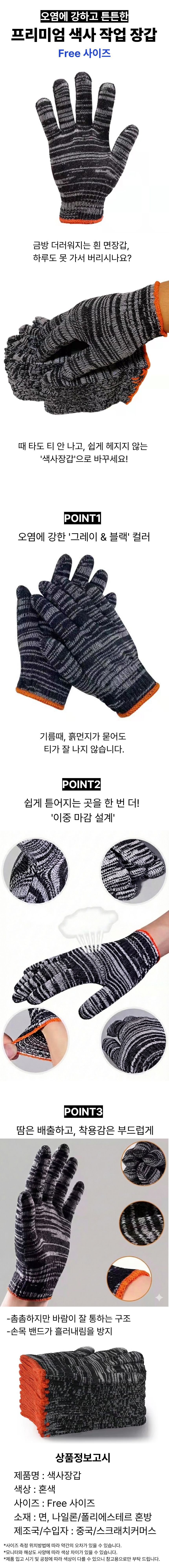 다목적 색사 면 장갑 주유소 당구장 목장갑 1켤레