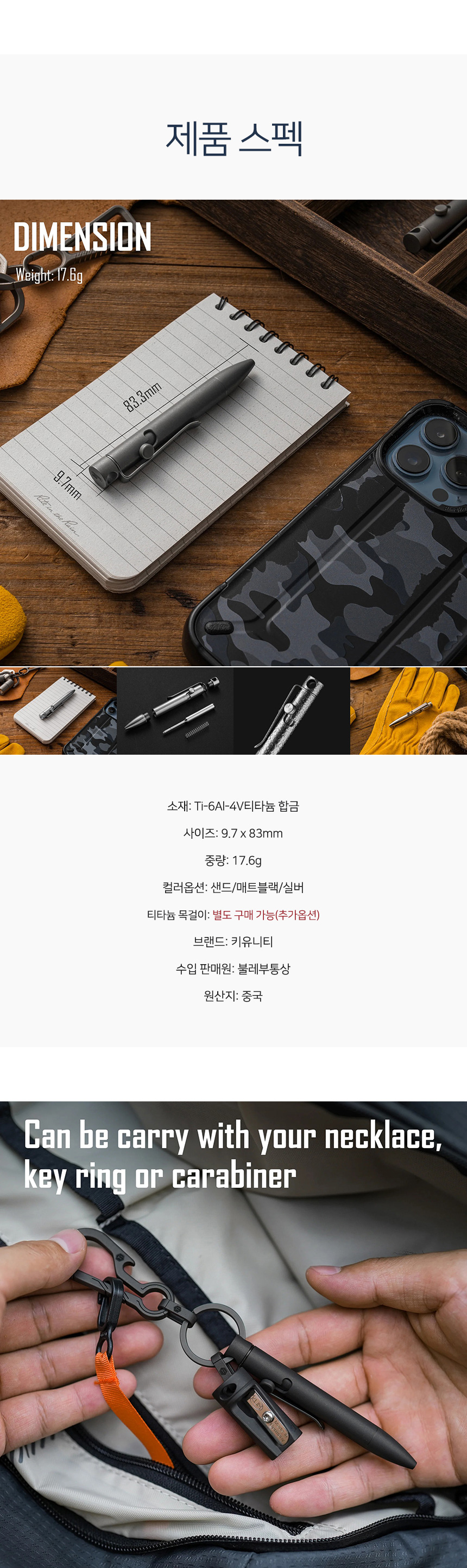 | 제품군 | 기타재화 | 품명 | 키유니티 티타늄 액션 펜 KP05 리필펜 2개 추가 |