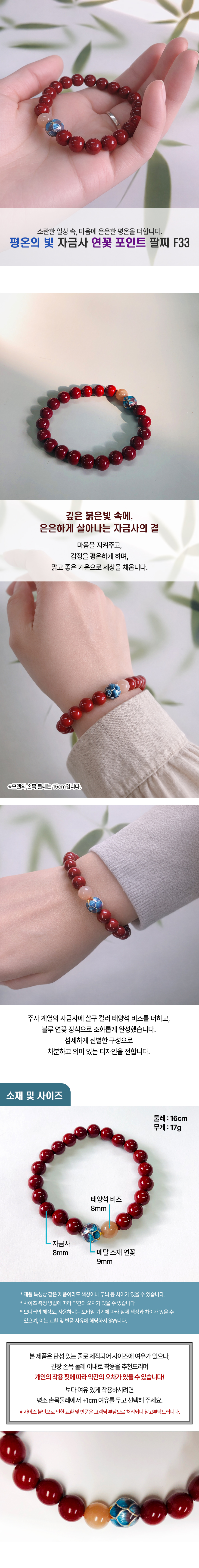 | 소재 | 자금사, 태양석 비즈,메탈 소재 연꽃,우레탄줄 | 치수 | 16cm |