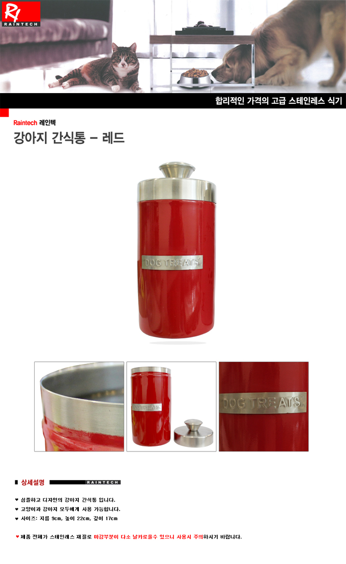 레인텍 강아지 간식통 반려동물 간식 외출 휴대용 저장통 레드