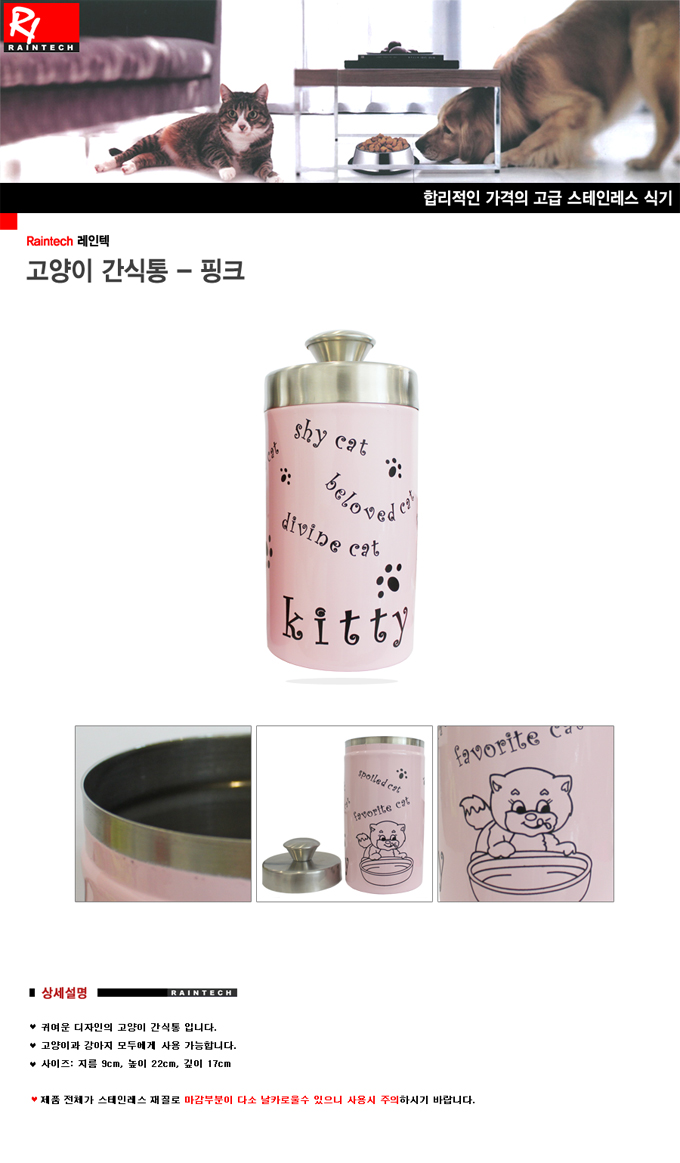 레인텍 강아지 간식통 반려동물 간식 외출 휴대용 저장통 핑크