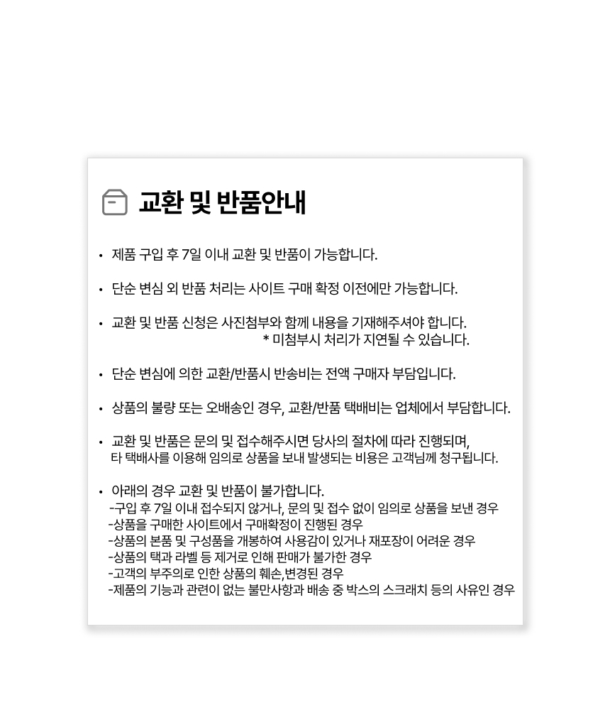 | 상품의 교환/반품/보증 조건 및 품질보증 기준 | |||