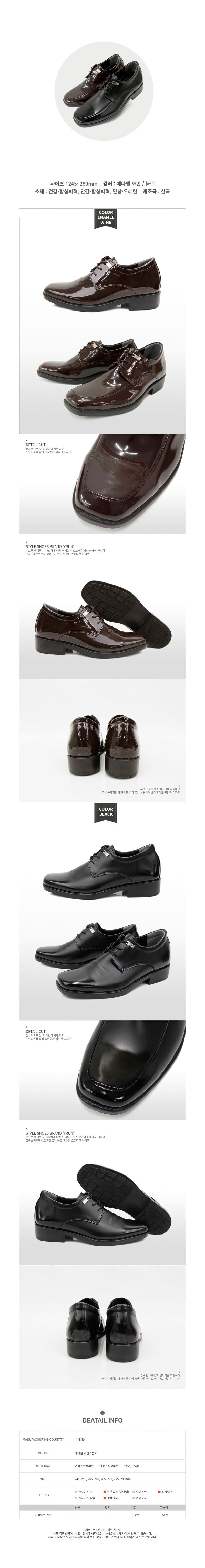 남성 유광 구두 U팁 (에나멜와인) 키높이 정장화 끈구두 신사화 굽3.5cm