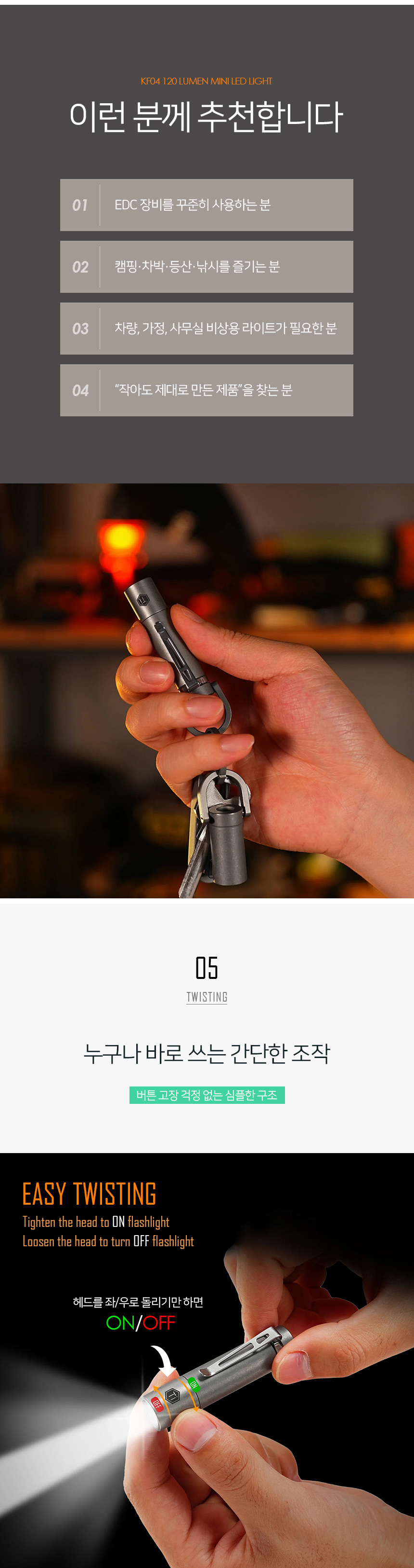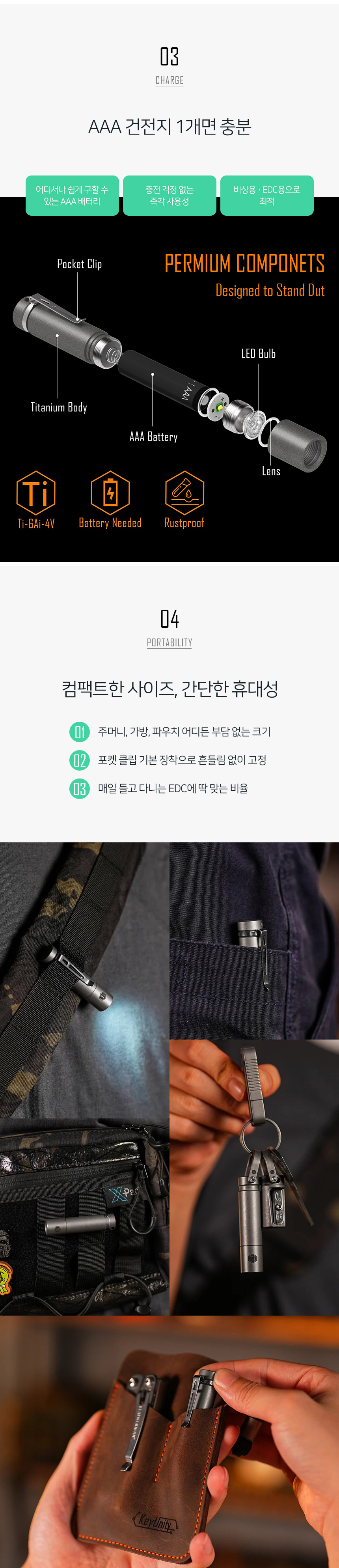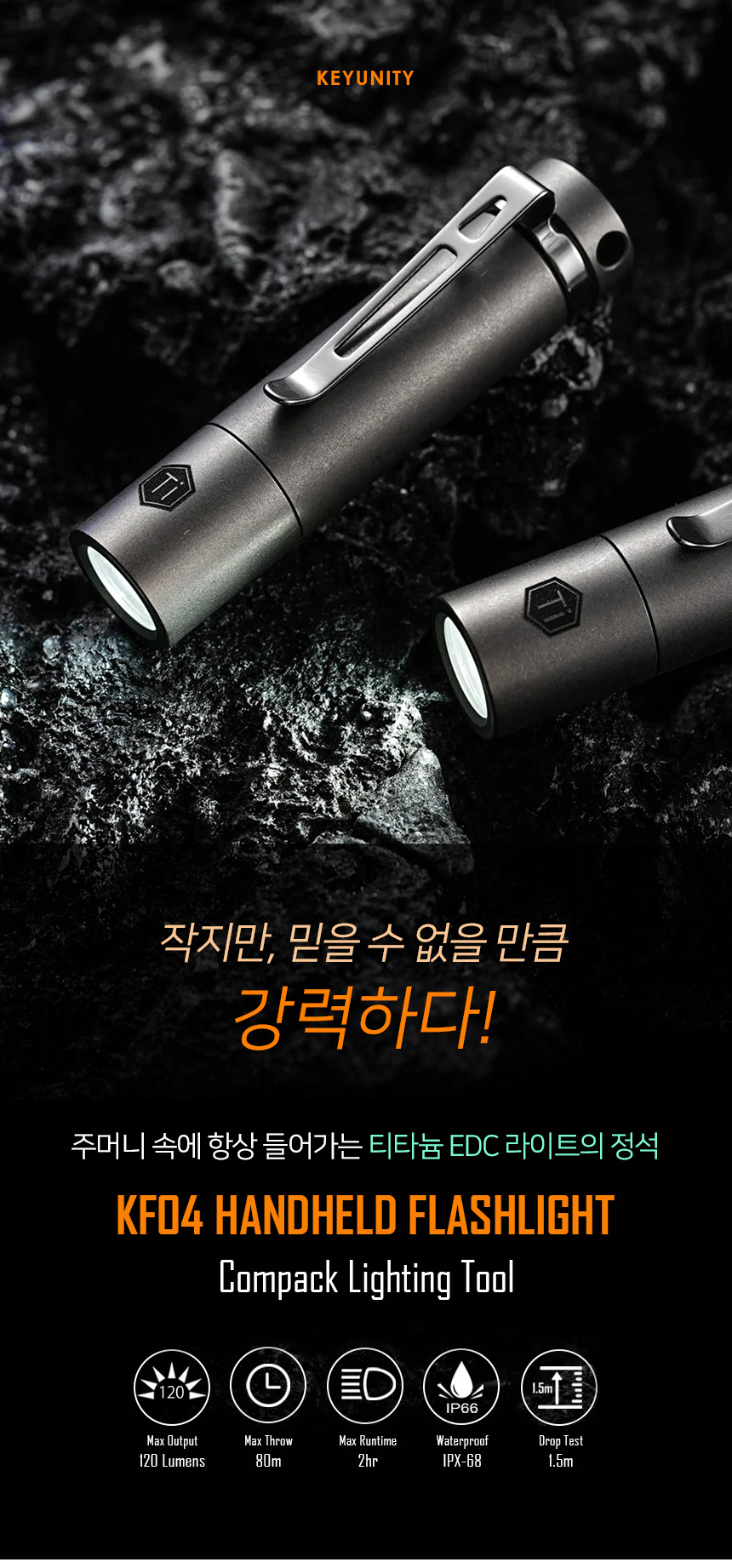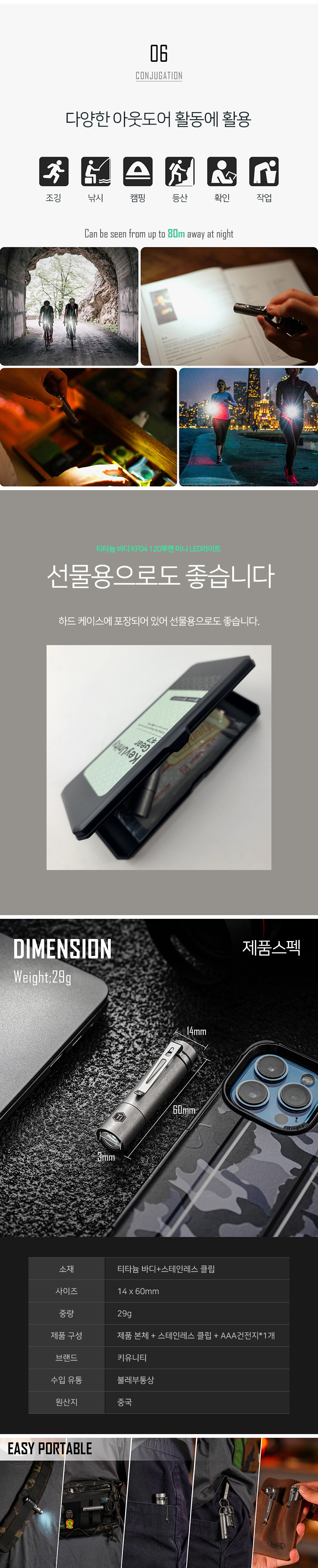 | 제품군 | 기타재화 | 품명 | 키유니티 티타늄 바디 KF04 120루멘 미니 LED라이트 |
