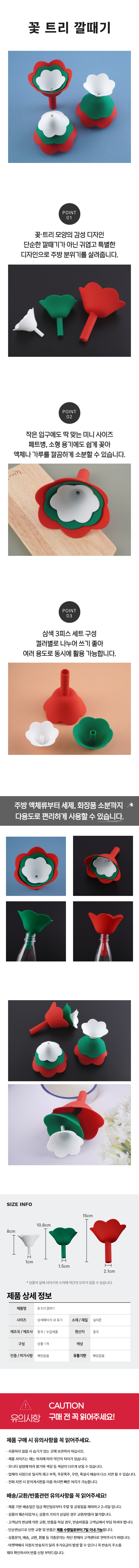 꽃트리 실리콘 미니 페트병 액체 분배 소분 깔대기 삼색 3피스