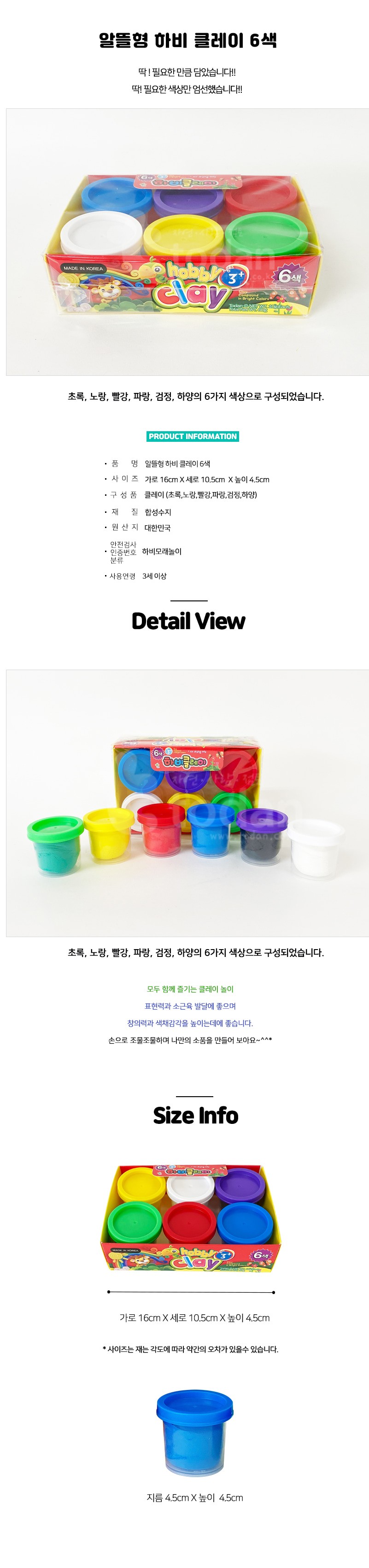 모델명(TD) 알뜰형 하비 클레이 6색
