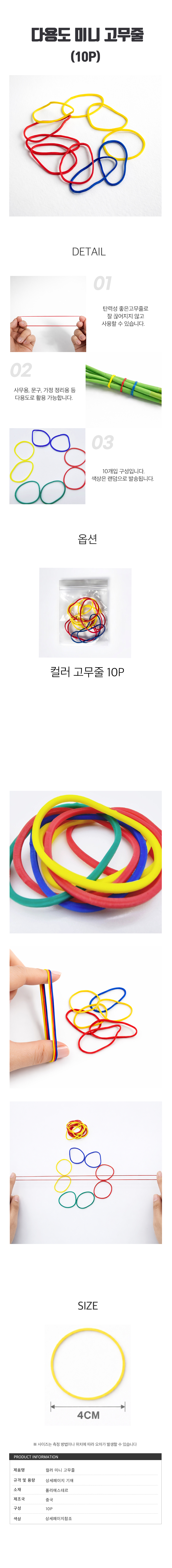 다용도 컬러 고무줄 10P 사무용 포장 고무밴드