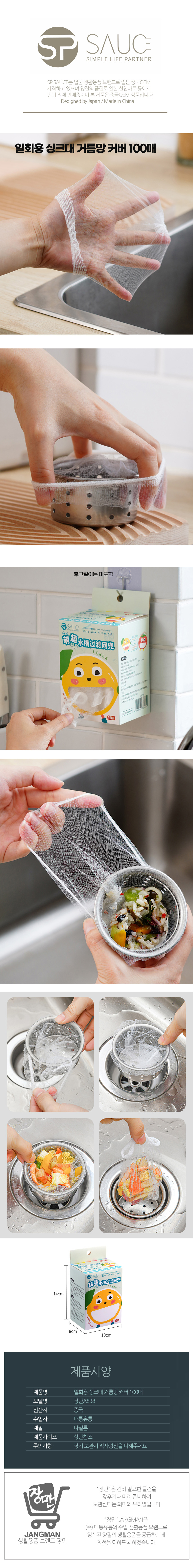 | 제품군 | 기타재화 | 품명 | 장만A840 일회용 싱크대 거름망 커버 100매 망사덮개 |