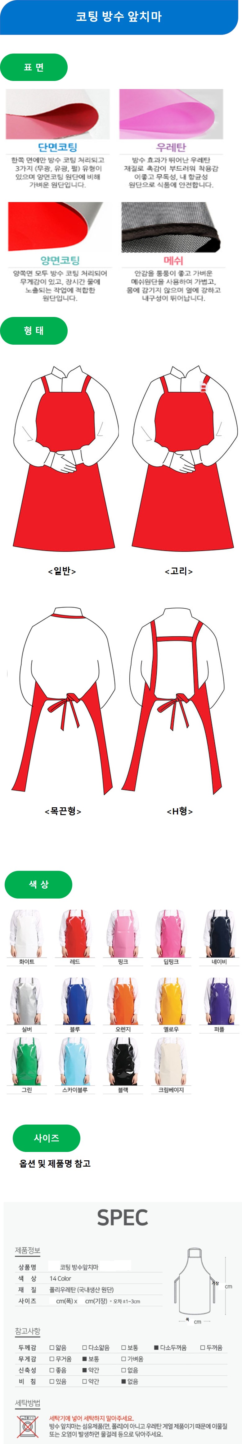 방수앞치마 무광양면코팅 쌍고리 H형 중형 65X90cm 10장 네이비