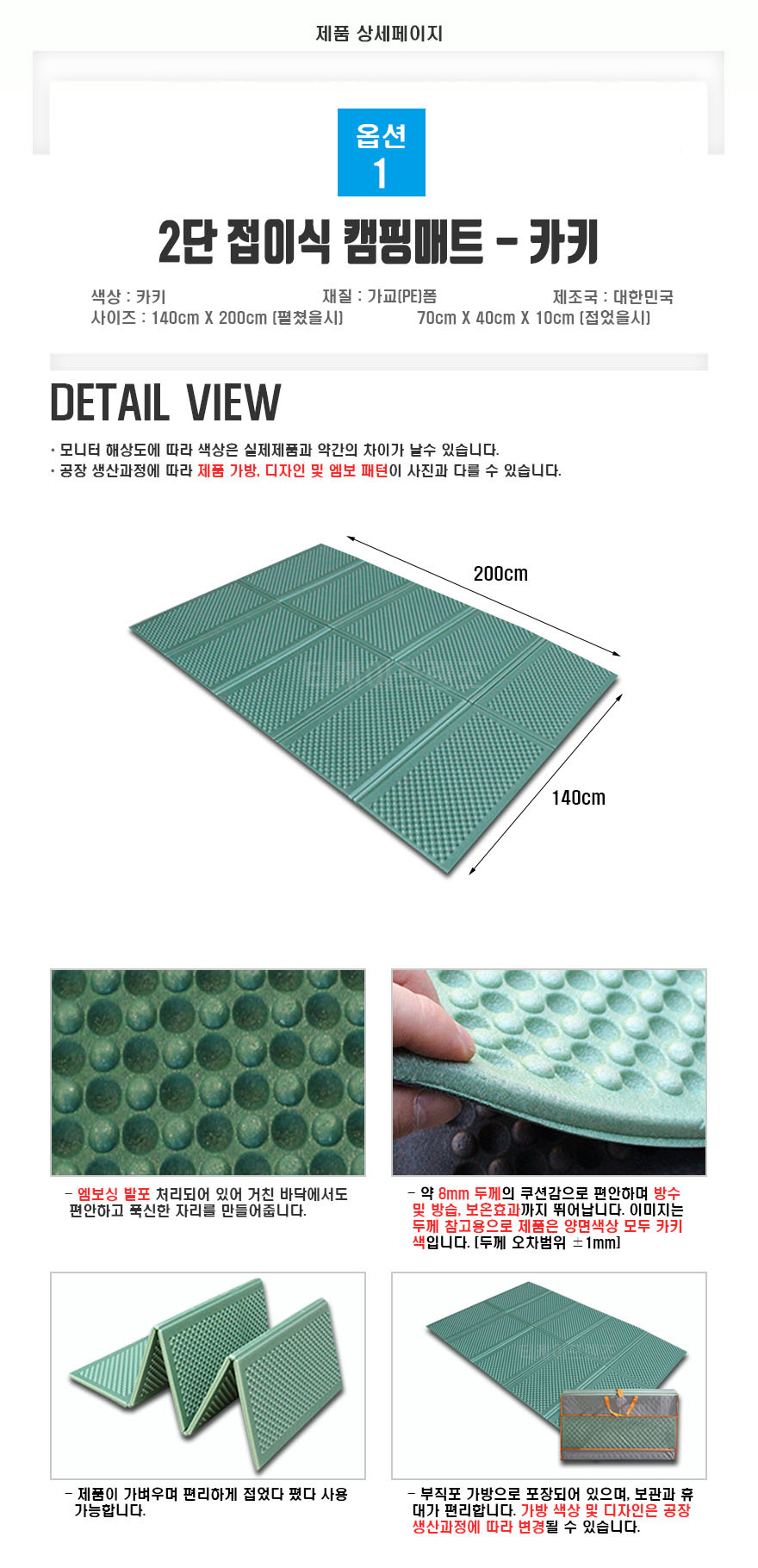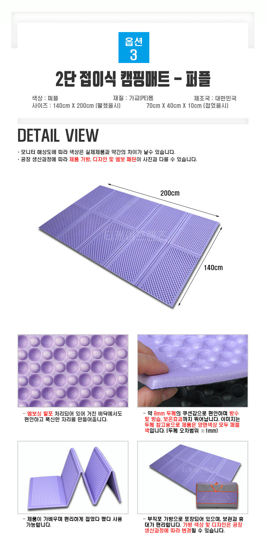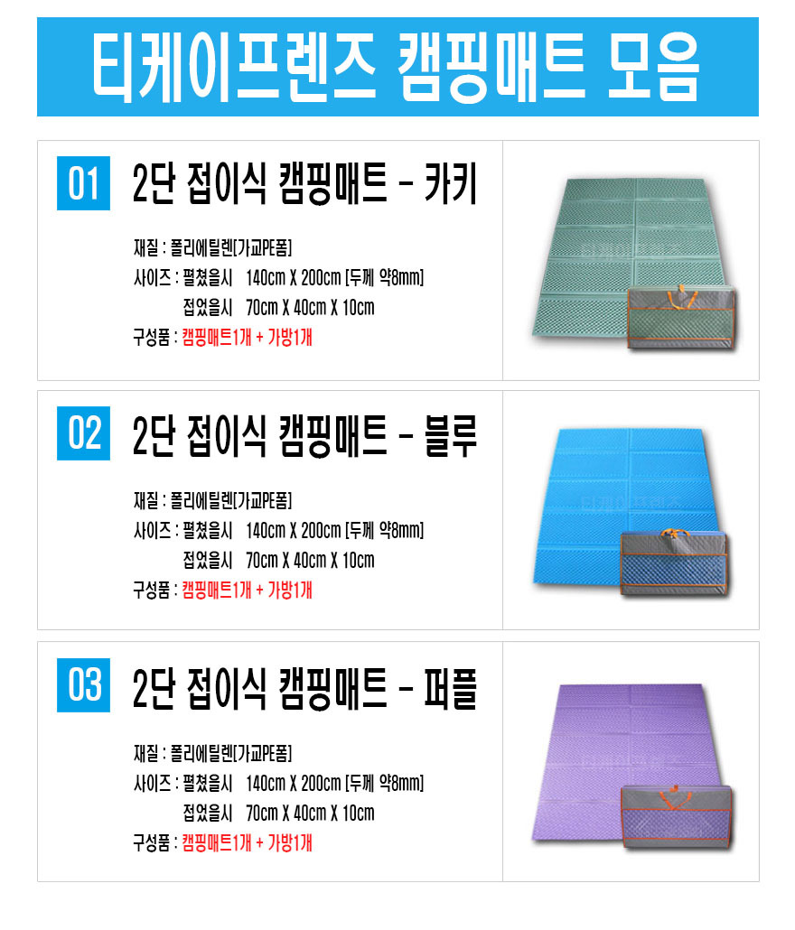 | 색상 | 카키, 블루, 퍼플 | 재질 | PE폼 |