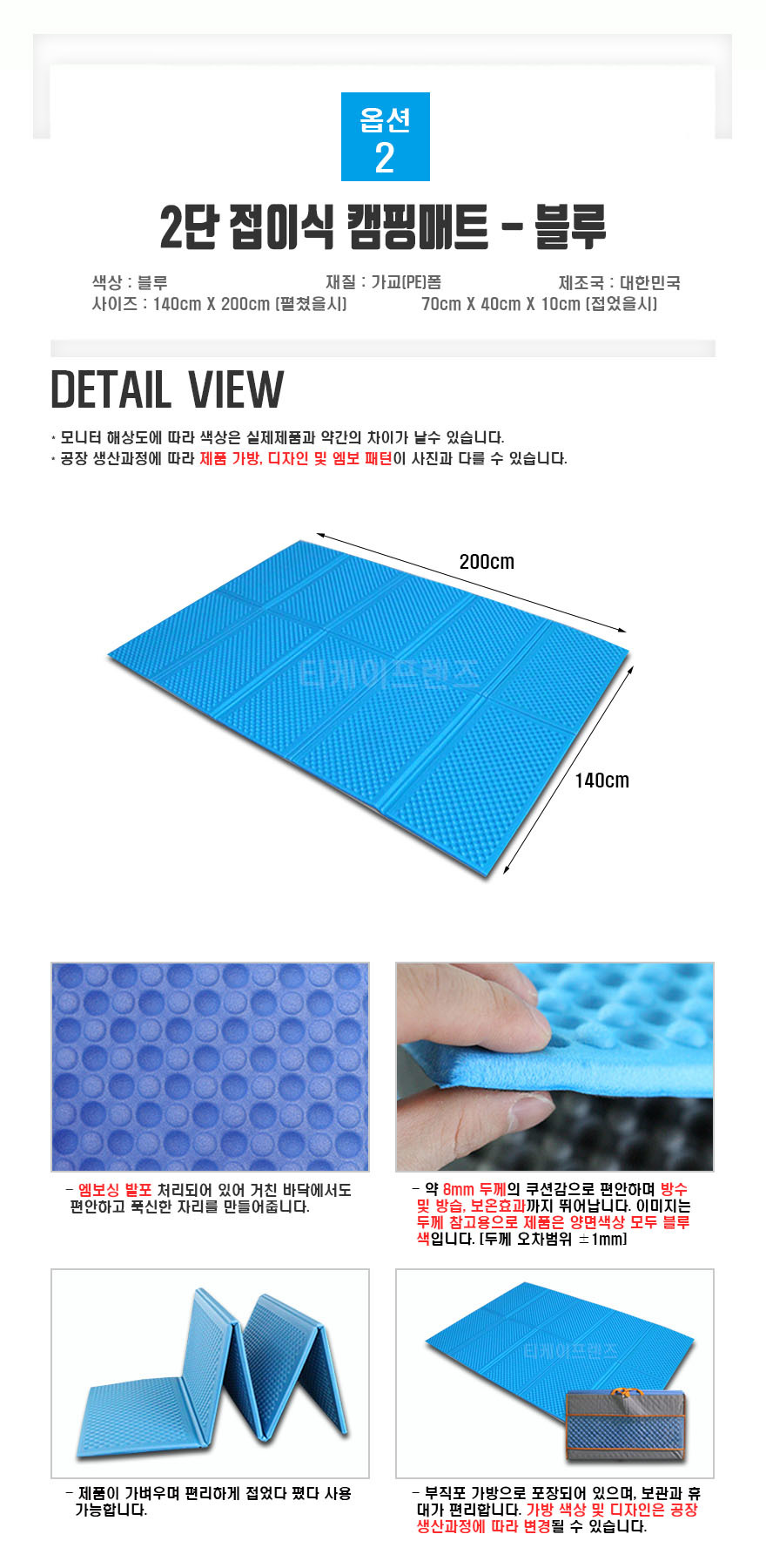 | 제품군 | 스포츠용품 | 품명 | 티케이프렌즈 캠핑매트 140cmX200cm |