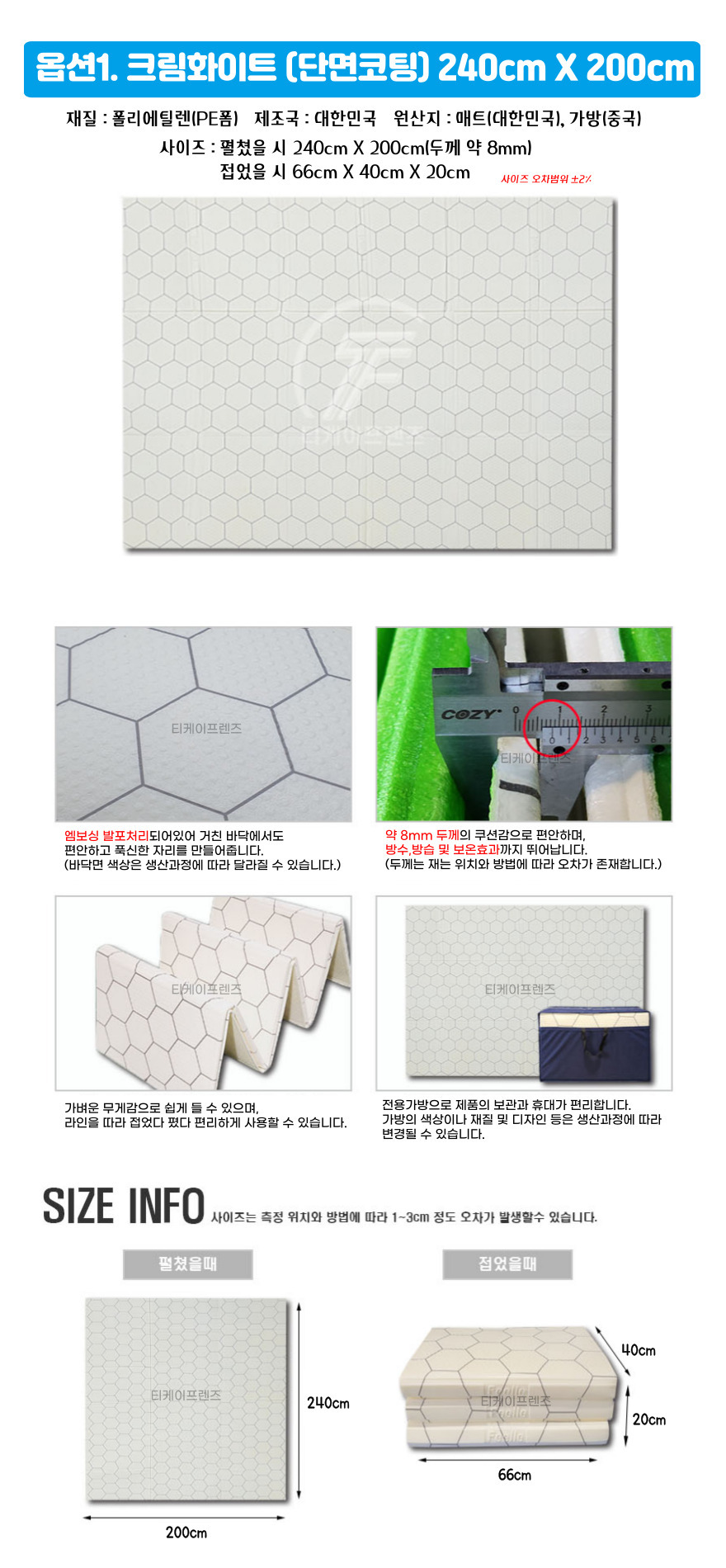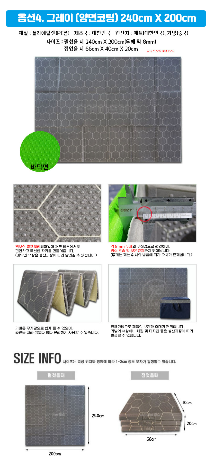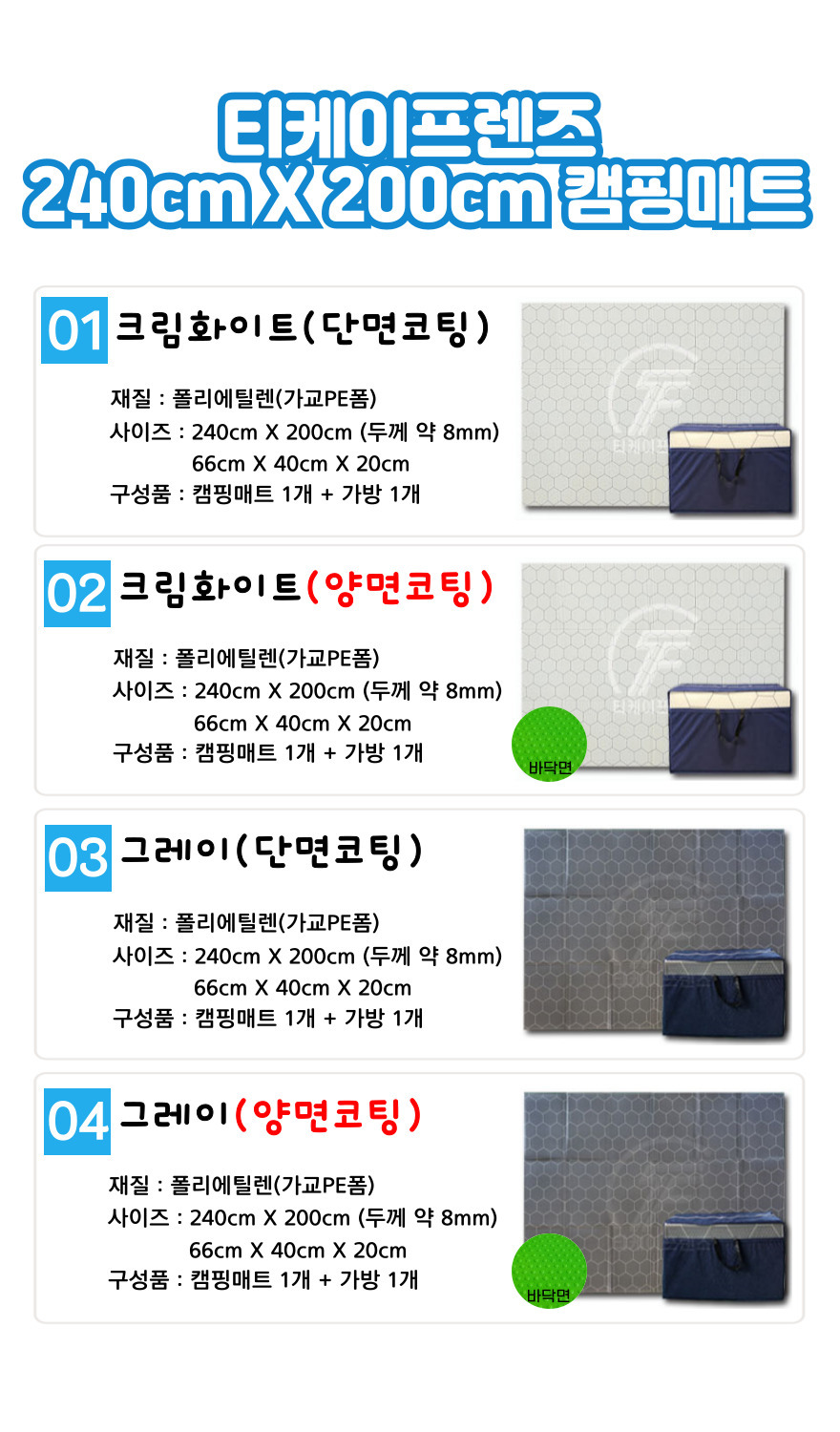 | 제품군 | 스포츠용품 | 품명 | 티케이프렌즈 캠핑매트 240cmX200cm |