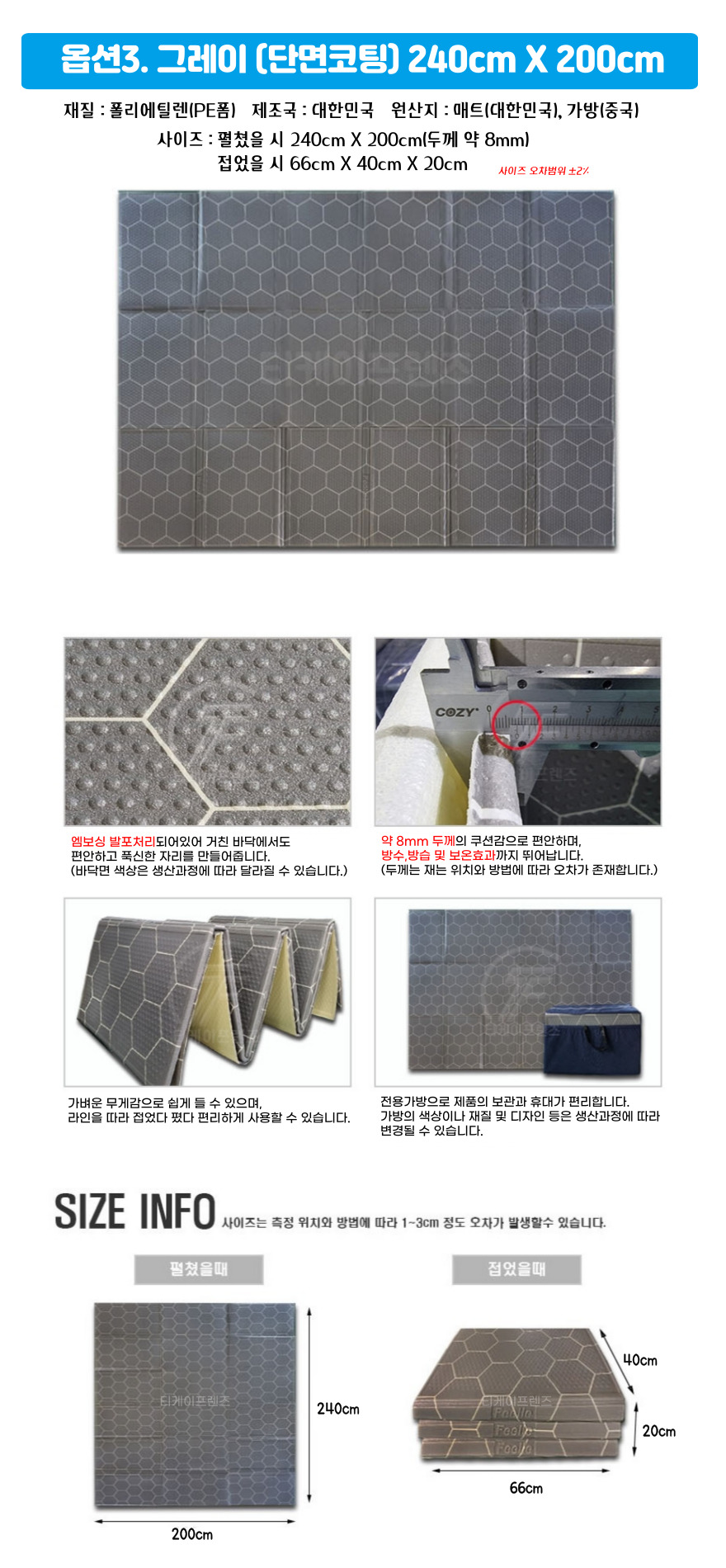 | 색상 | 크림화이트, 그레이 | 재질 | PE폼 |
