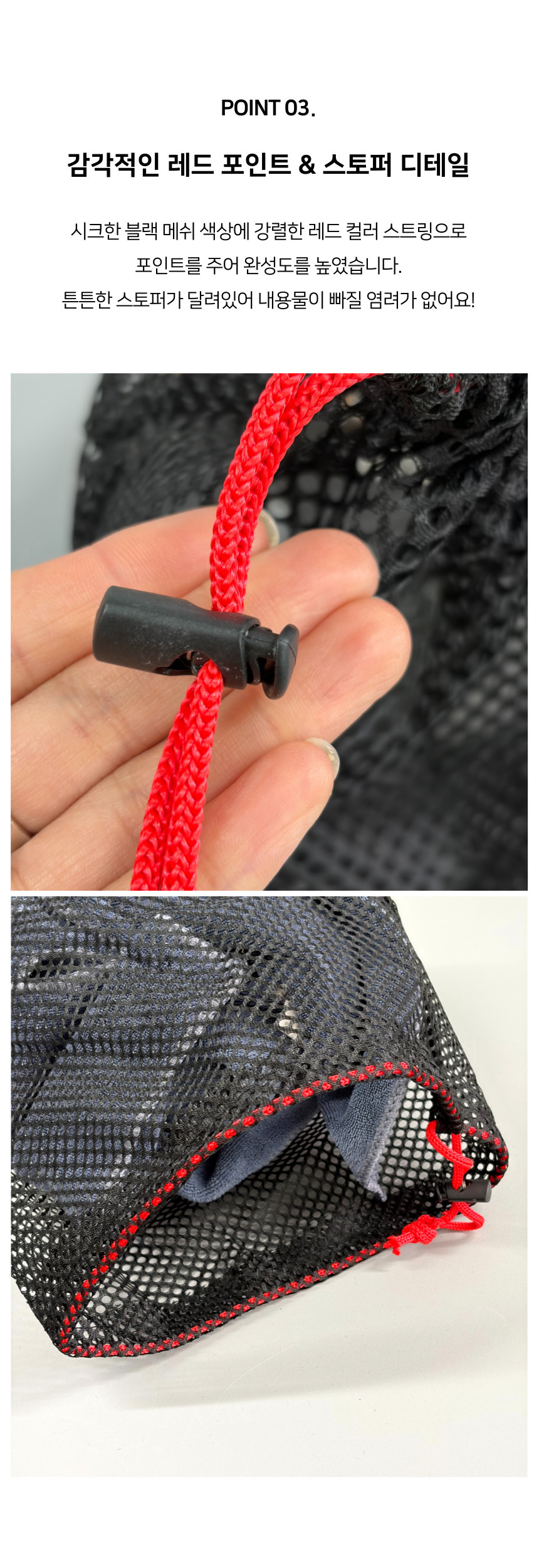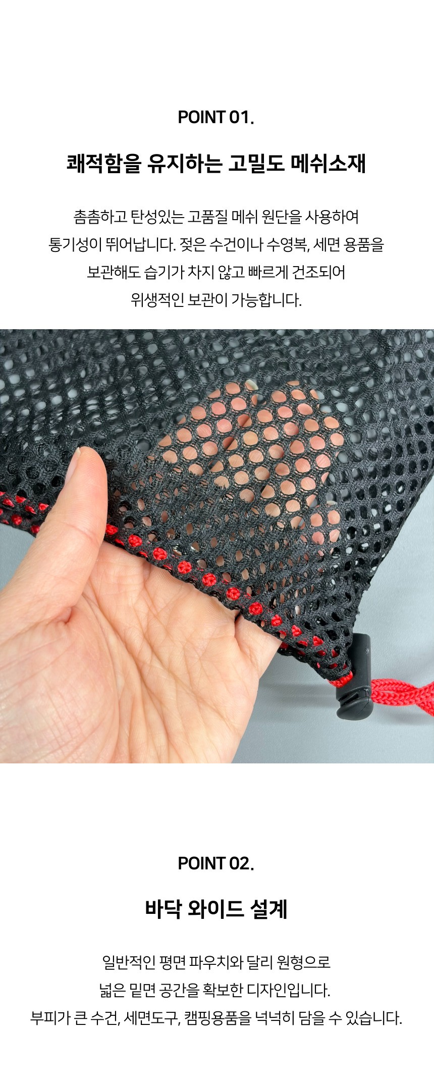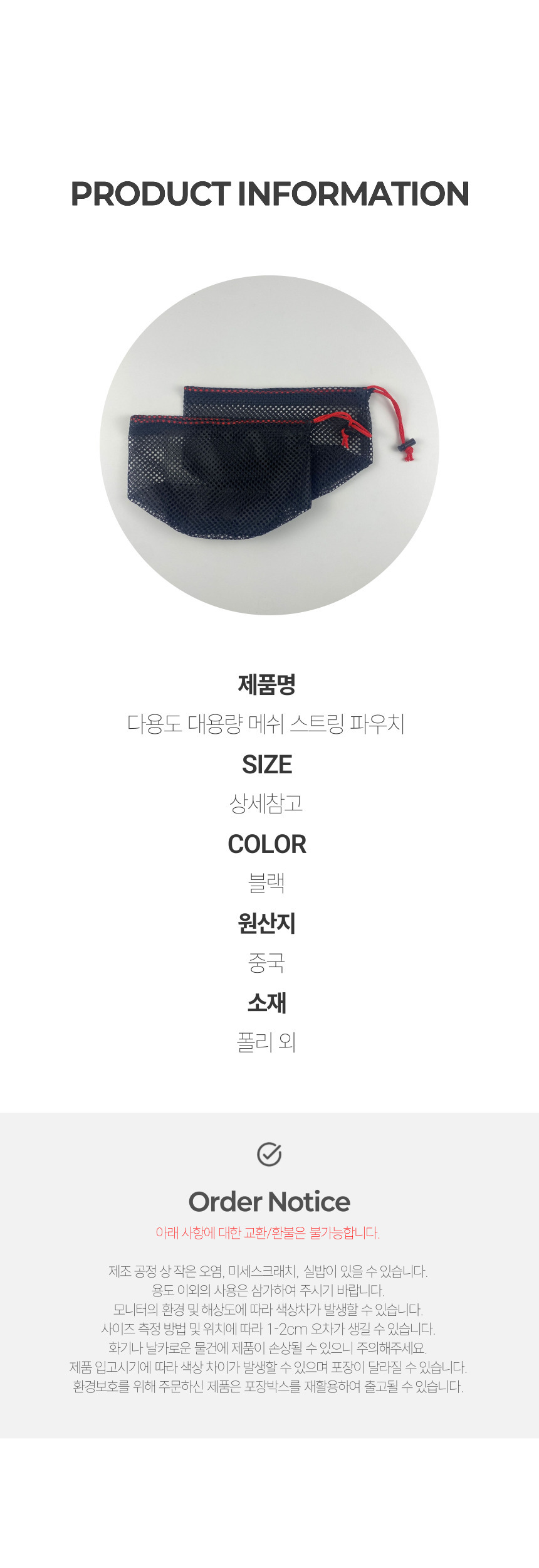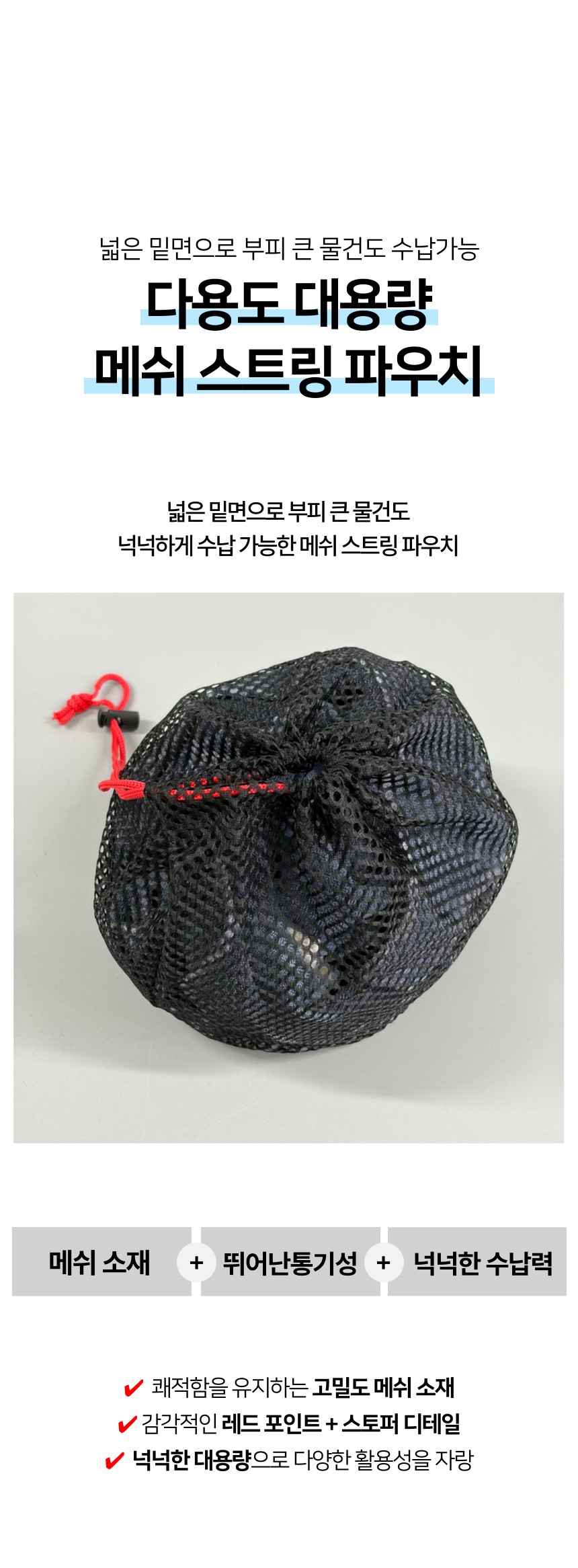 다용도 밑면 넓은 대용량 메쉬 스트링 파우치