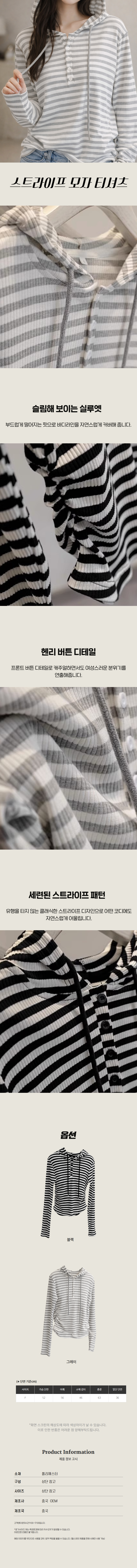 여성 핏라인 스트라이프 모자 티셔츠 줄무늬 긴팔티