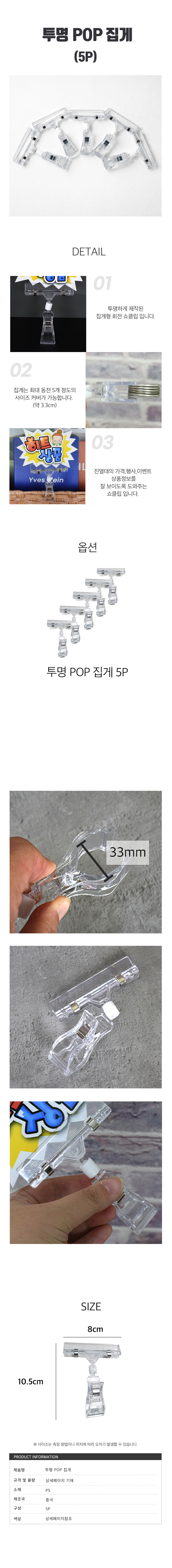 투명 POP 집게 5개 가격표 클립 네임택 메뉴 꽂이 홀더