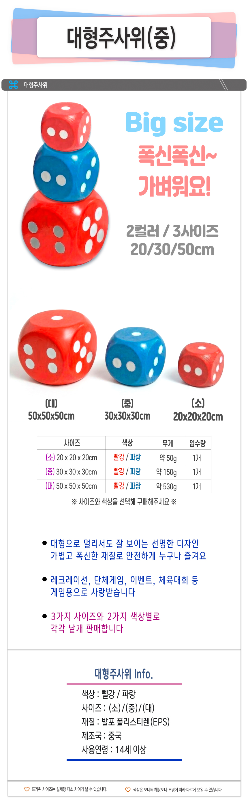 | 제품군 | 기타재화 | 품명 | 대형주사위(중) |
