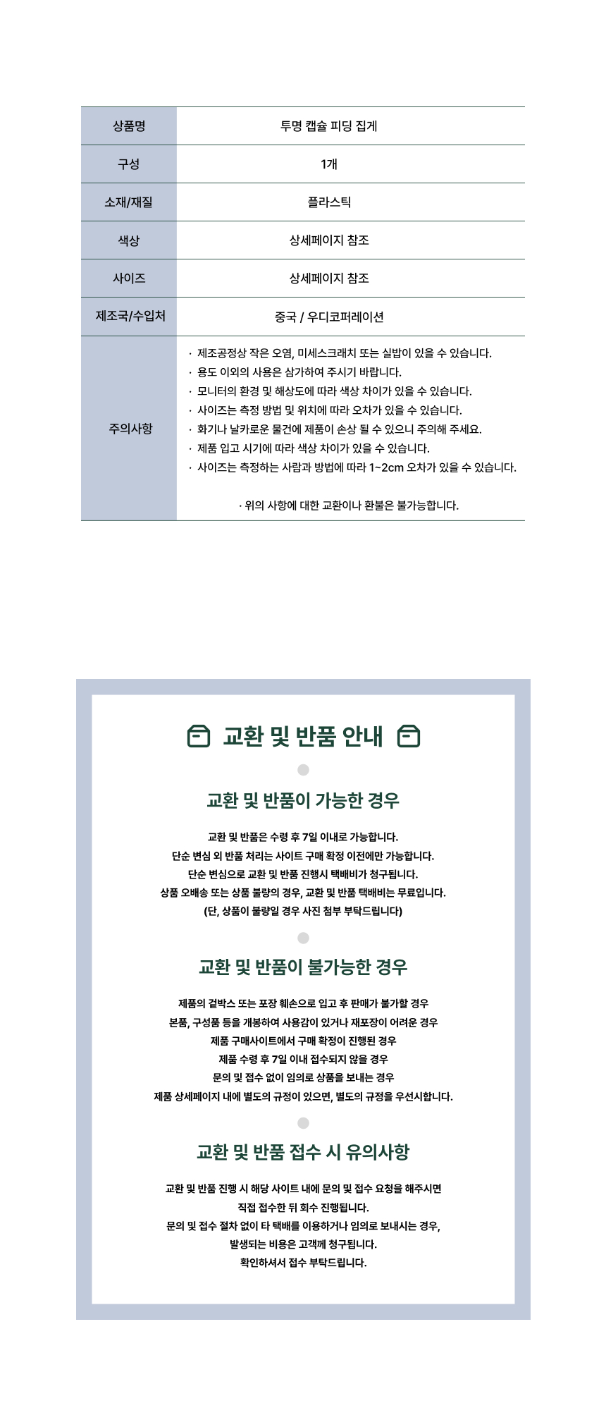 | 상품의 교환/반품/보증 조건 및 품질보증 기준 | |||