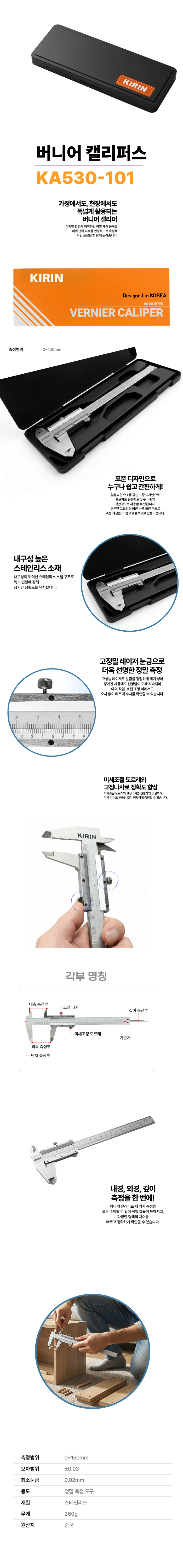 | 제품군 | 기타재화 | 품명 | 미세 단위 측정 150mm 기린 버니어 캘리퍼스 KA530-101 |