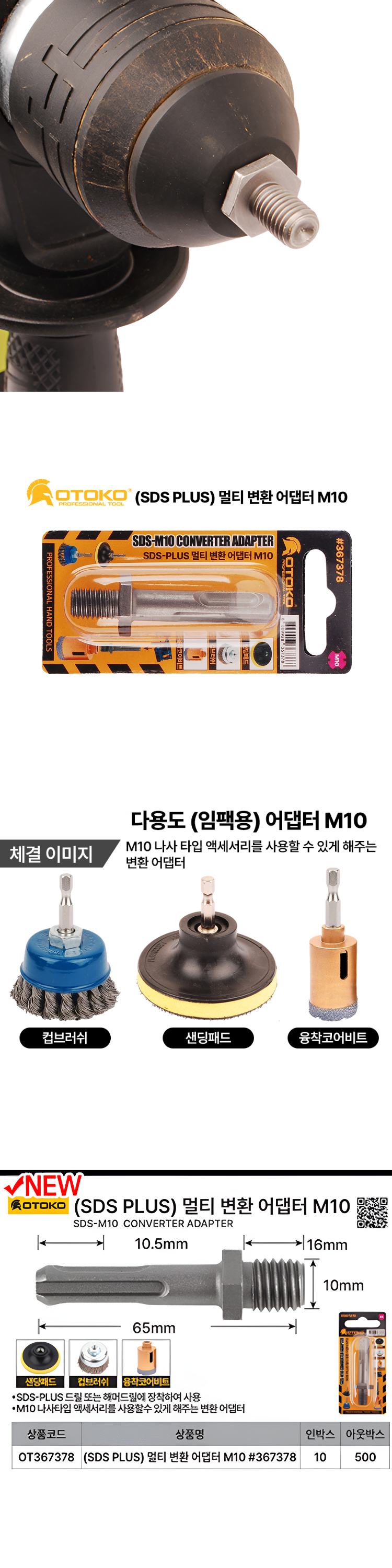 | 제품군 | 기타재화 | 품명 | 샌딩패드 컵브러쉬 융착코어비트 SDS PLUS 멀티 변환 어댑터 M10 |