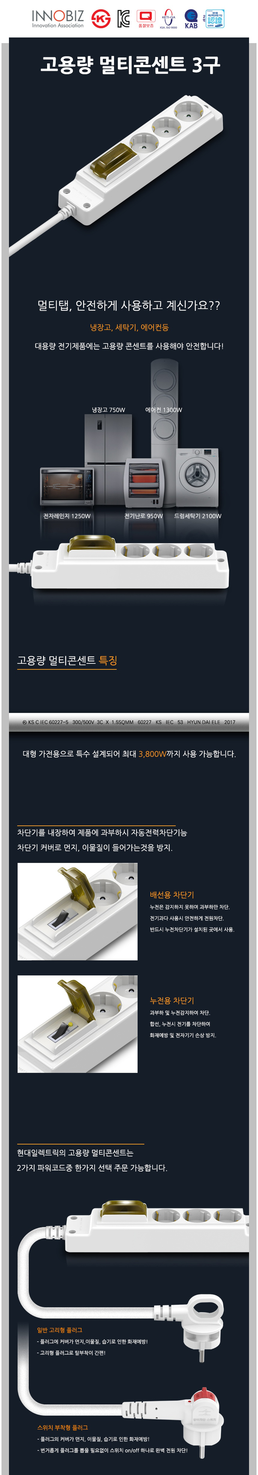 | 모델명 | 현대일렉트릭 고용량 배선차단기 멀티코드 3구 1.5M 멀티탭 | 법에 의한 인증, 허가 등을 받았음을 확인할 수 있는 경우 그에 대한 사항 | 상세정보 별도표기 |