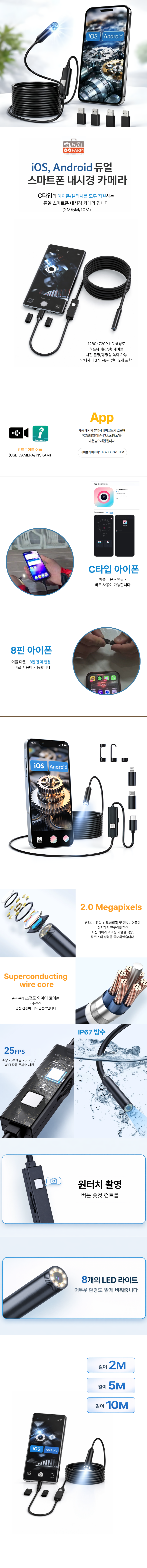 | 제품군 | 기타재화 | 품명 | 아이폰 갤럭시 겸용 듀얼 강선 C타입 스마트폰 내시경 카메라 10M |