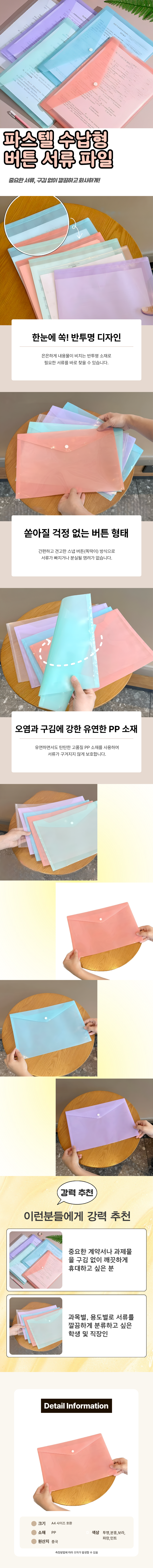 서류정리 A4 똑딱이 단추 반투명 화일 케이스