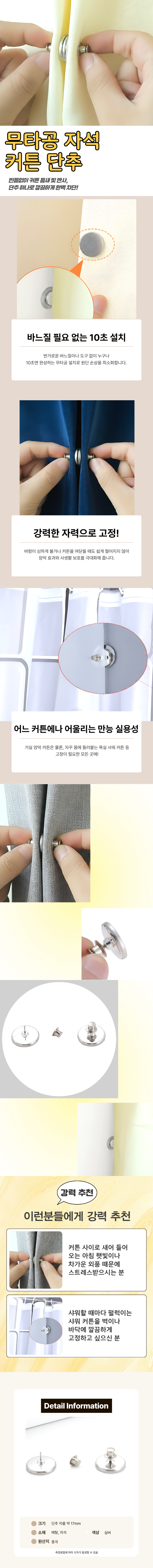 커튼 벌어짐 방지 마그네틱 자석 단추 고정핀
