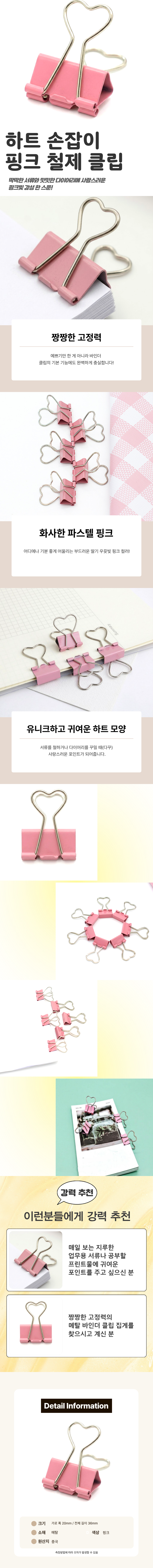 하트 손잡이 파스텔 서류 바인더 집게 클립