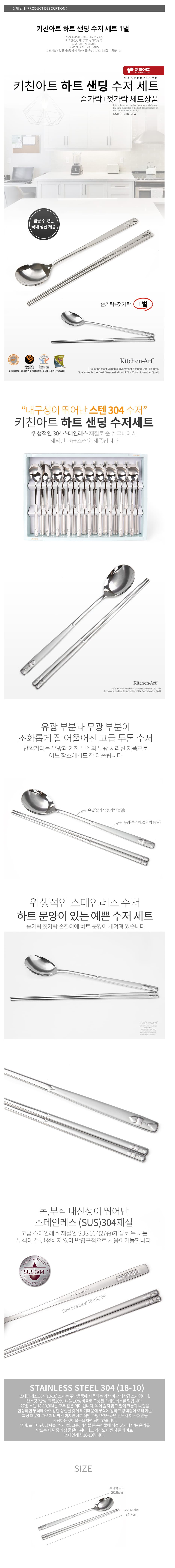 키친아트 실버 수저세트 숟가락 젓가락 하트문양 한식 수저 1세트