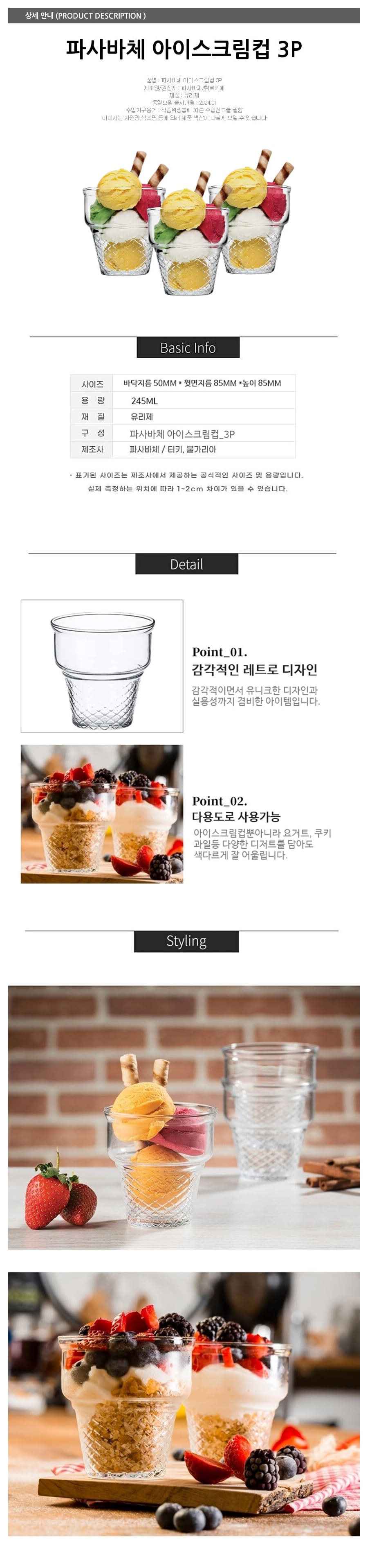 파사바체 유리컵 아이스크림 파르페 빙수 디저트 컵 245ml