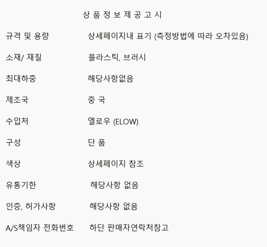 제조자(사) 상세정보 별도표기 A/S 책임자 또는 소비자 상담 관련 전화번호 상세정보 별도표기