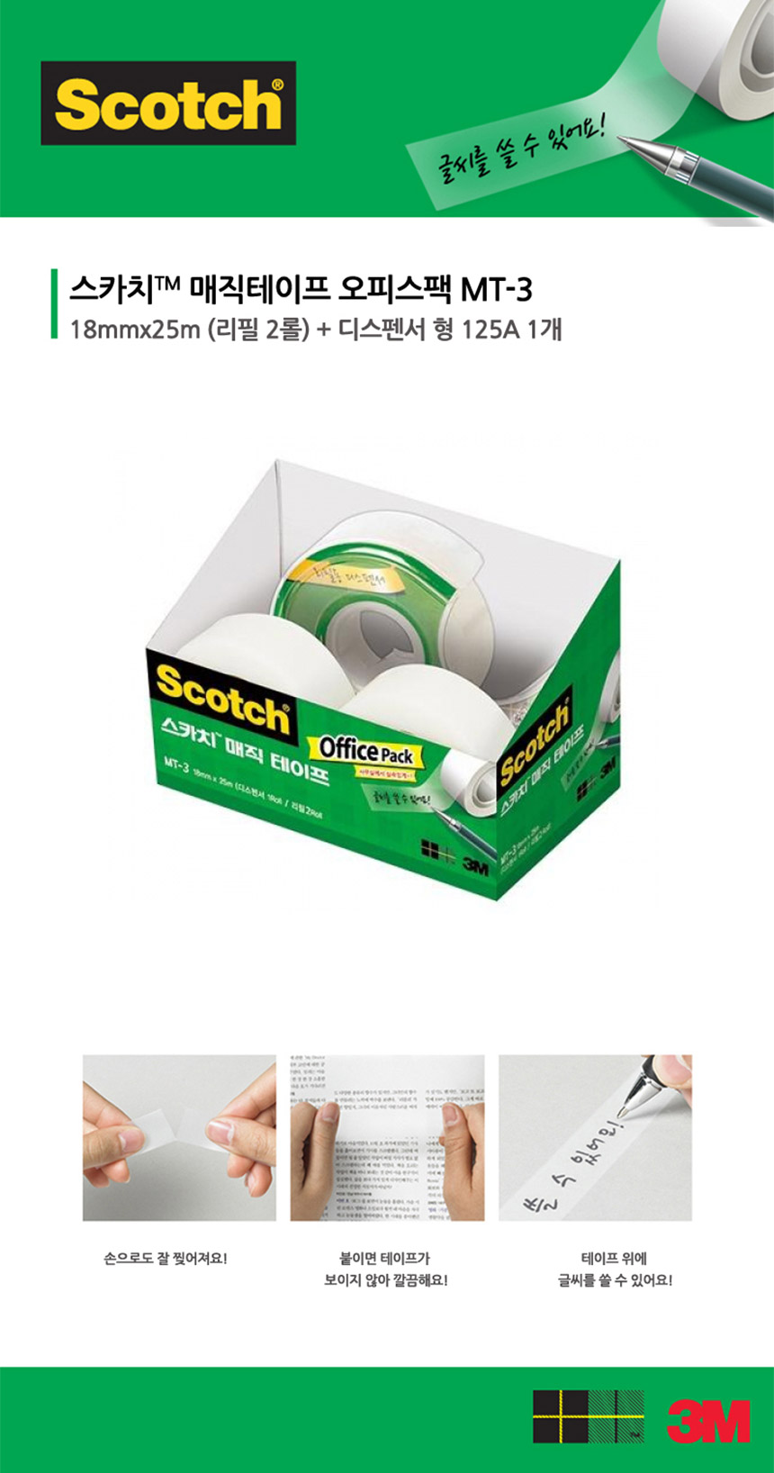 스카치 매직테이프 MT-3 18mmx25M_리필2개+디스펜서