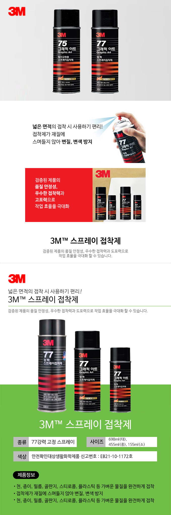 스카치 강력스프레이접착제 155ml77 순간접착제