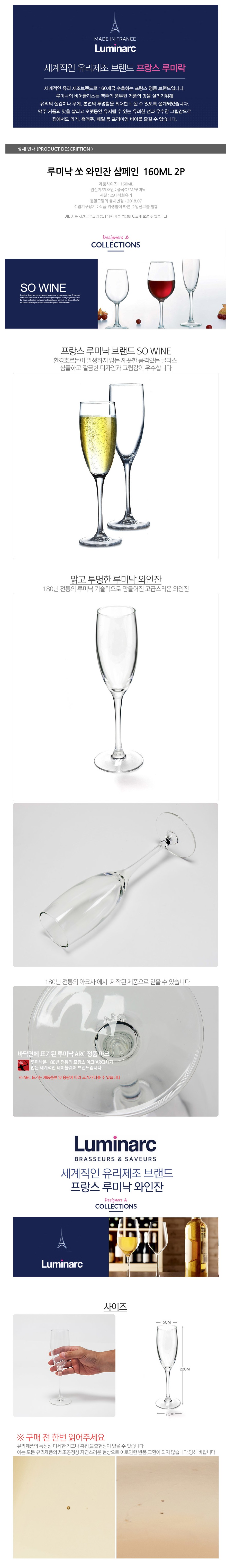 루미낙 와인잔 샴페인잔 고블렛 유리잔 글라스 컵 160ml