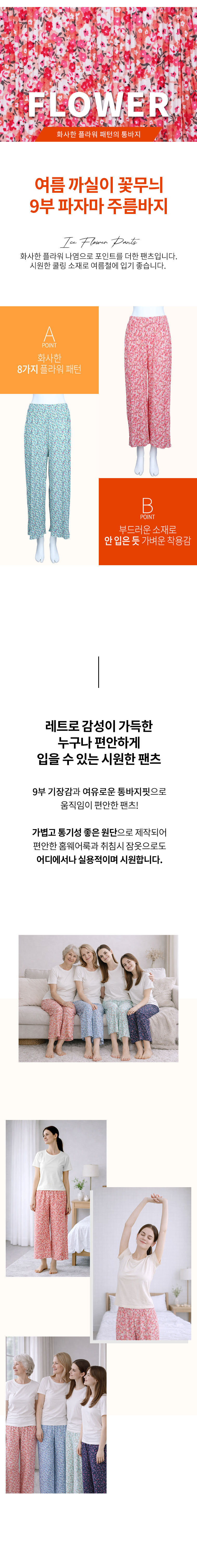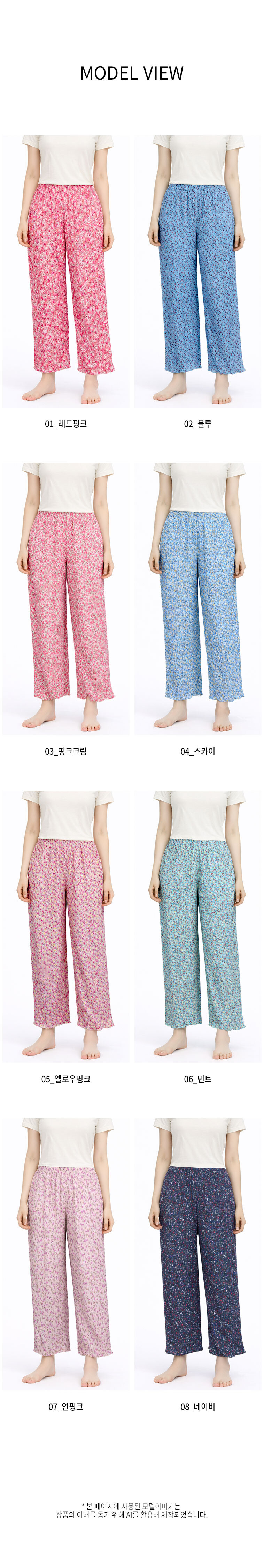 여름 까실이 꽃무늬 9부 파자마 주름바지