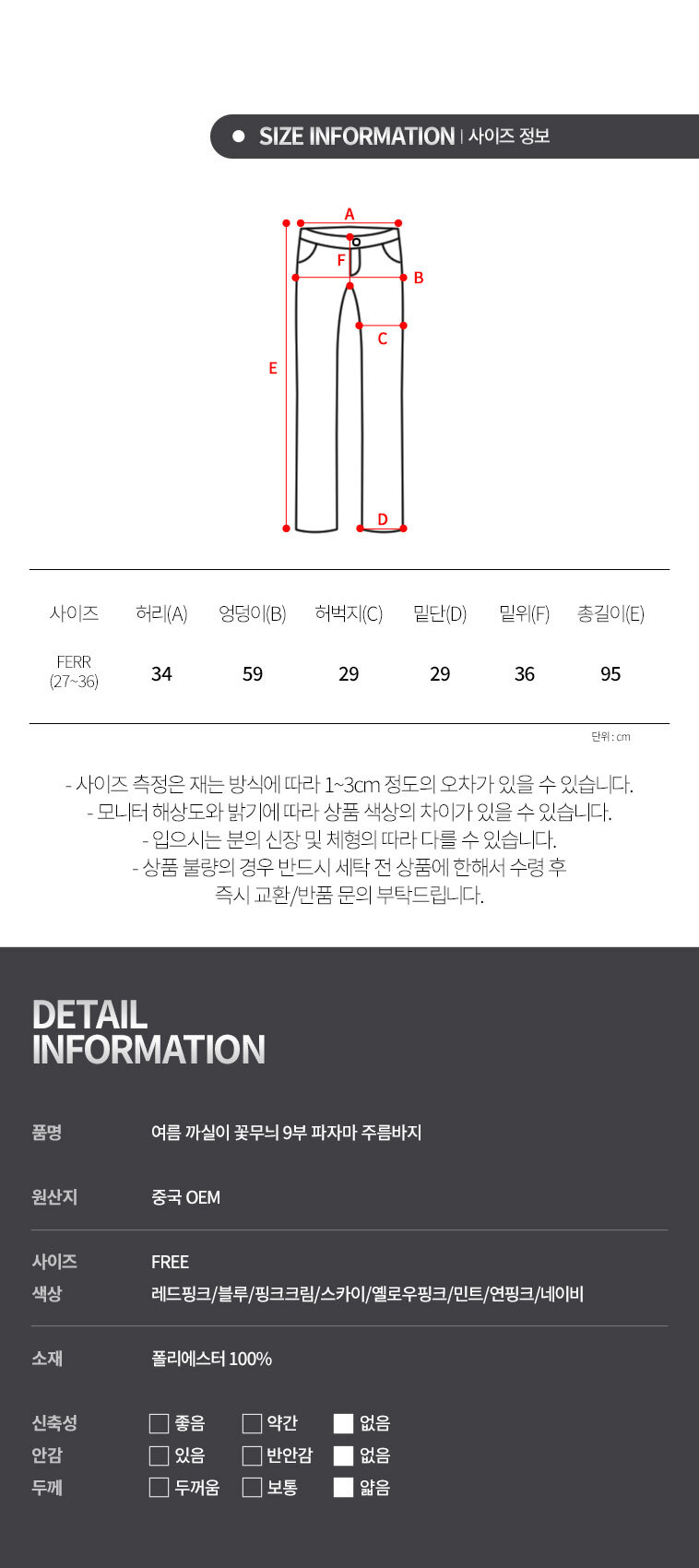 색상 상품 상세정보에 별도 표기 치수 상품 상세정보에 별도 표기
