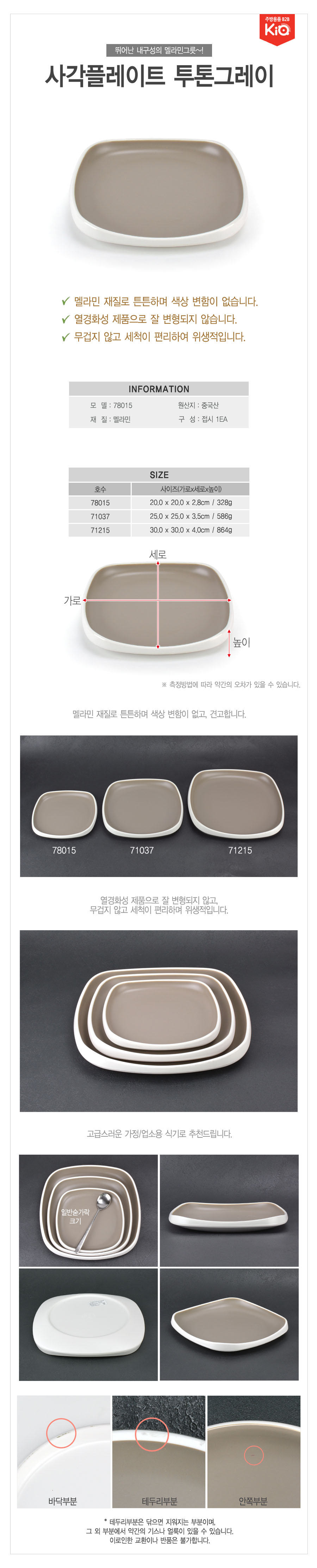 내구성 좋은 멜라민 투톤 사각 접시 DS-71215