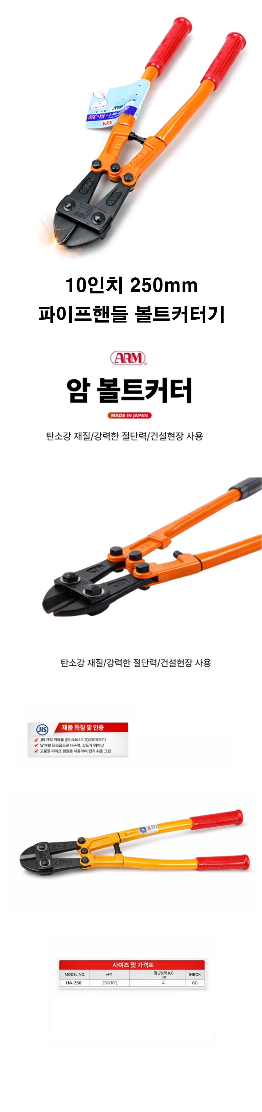 볼트 와이어 JIS 파이프핸들 10인치 250mm 커터절단기