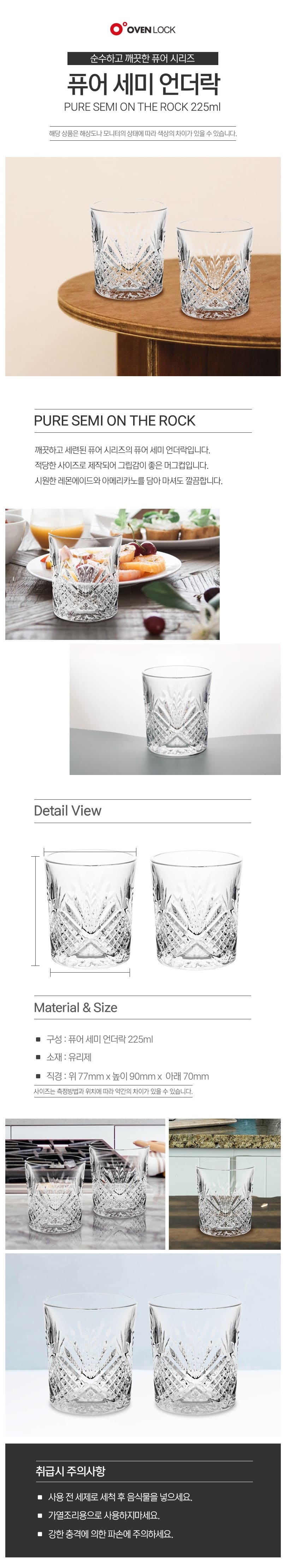 퓨어 세미 언더락 양주잔 위스키잔 물컵 물잔 글라스 225ml