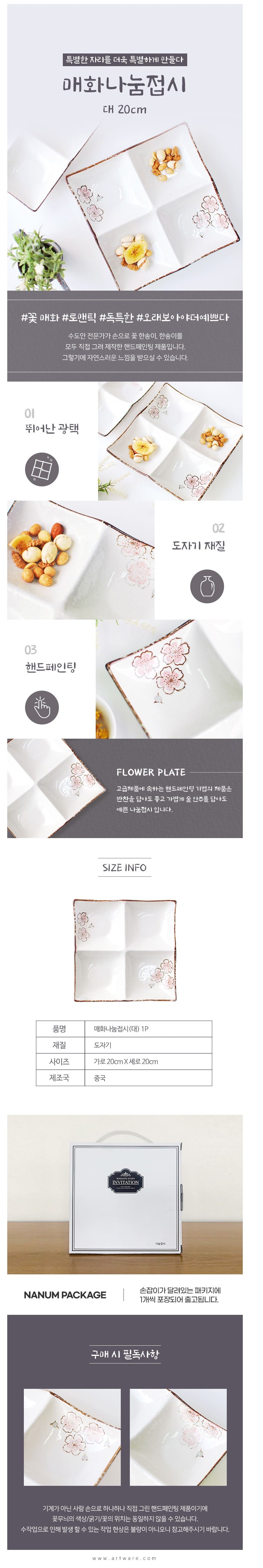 매화 나눔 접시 반찬 그릇 안주 사각 접시 찬기 4구 20cm