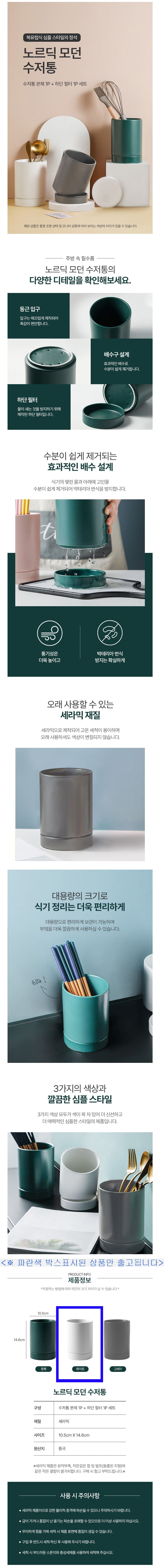 모던 수저통 식기 조리도구 보관함 세라믹 수저꽂이 화이트