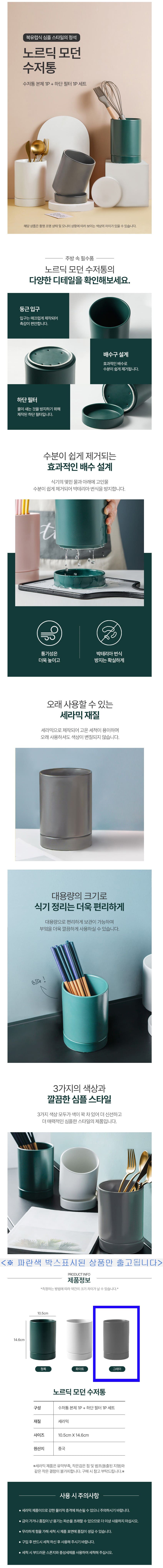 모던 수저통 식기 조리도구 보관함 세라믹 수저꽂이 그레이