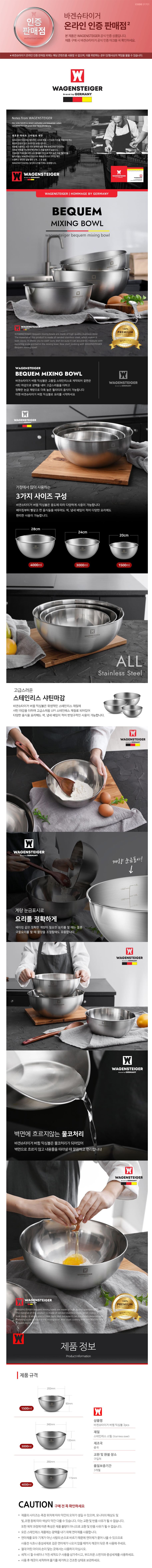 바겐슈타이거 스텐 믹싱볼 베이킹 반죽볼 샐러드볼 3종세트