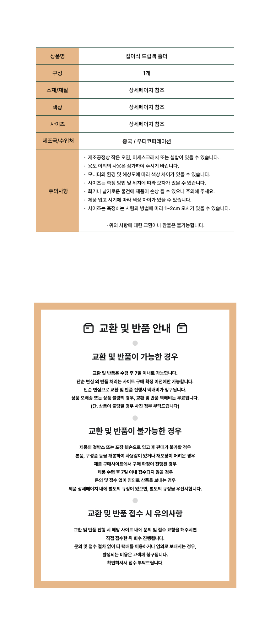 ※ 오배송, 불량, 파손 이외의 사유 및 색상 차이에 의한 반품/교환은 변심에 해당됩니다.