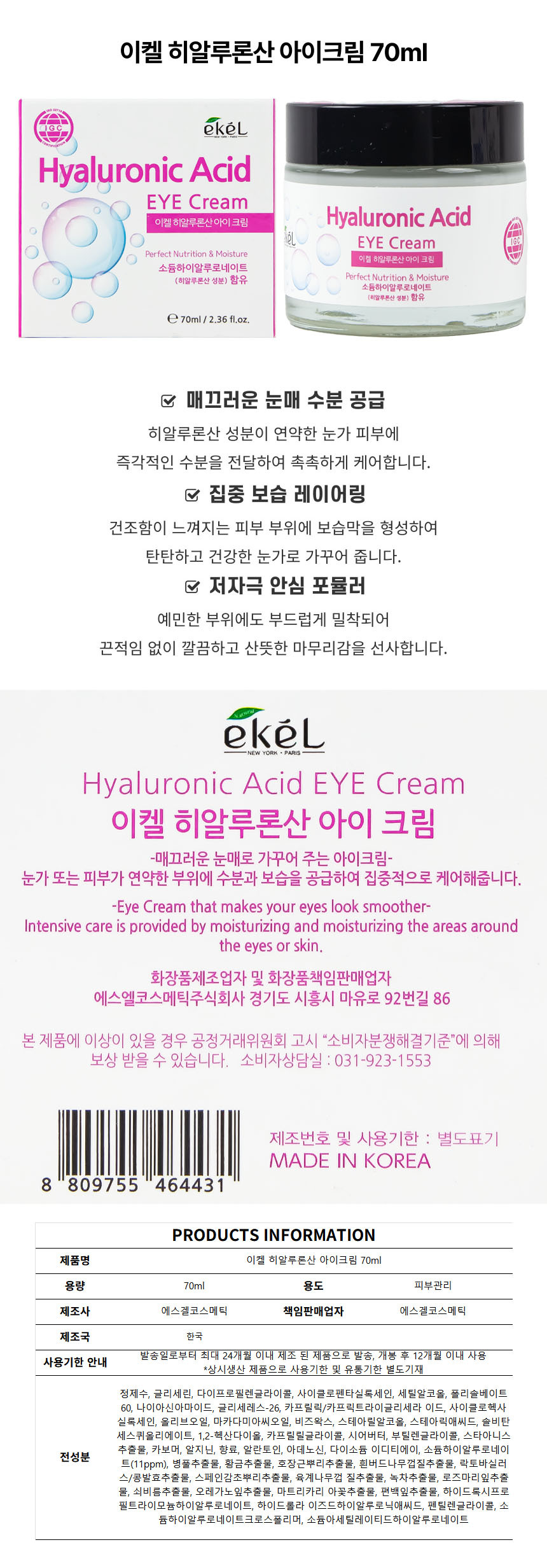 이켈 히알루론산 아이크림 70ml