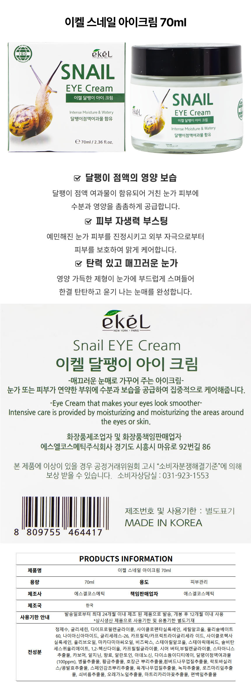 이켈 스네일 아이크림 70ml