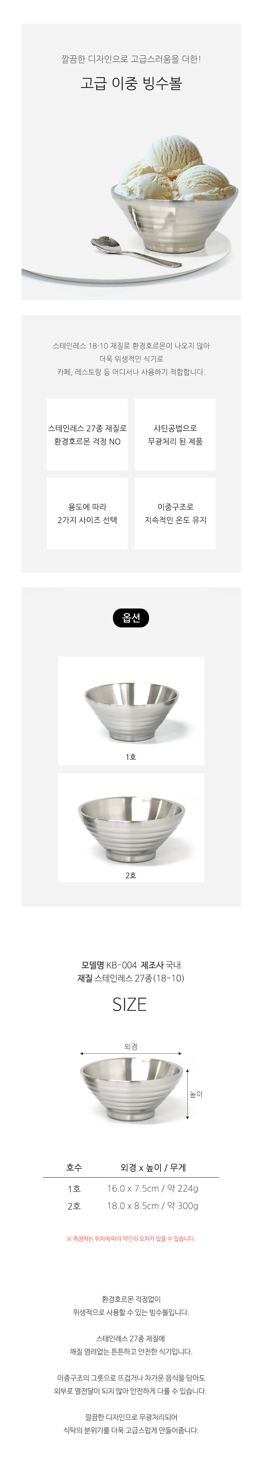 그릭요거트 이중 스텐 빙수볼 그릇 1호