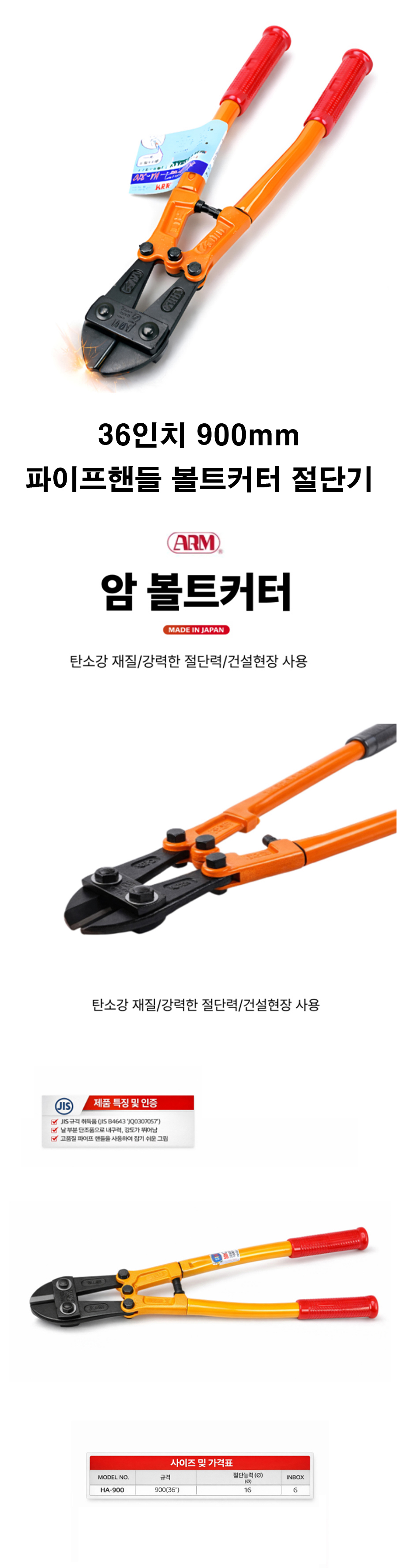 케이블 철근 JIS 파이프핸들 36인치 900mm 커터절단기